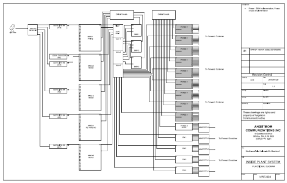 Headend Rebuilds - Project management and installation services to completely overhaul and rebuild a major cable television hub. This included broadcast video, premium digital television, VOD, DOCSIS high speed internet, and VoIP traffic. Development of documentation for projects also include front and rear rack elevations, floor plan layouts, functional block diagrams, grounding, overseeing powering concerns, equipment procurement logistics, tracking, fibre tray and cable installation, and development of cabling strategies for the headend.